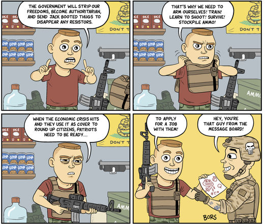 #Mastodon (source: @Matt Bors)The militia turned out to be not so well-regulated.(From July 2020)