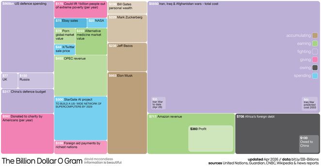 #Mastodon (source: @Information Is Beautiful)Every year(ish), since 2009, we’ve been gathering and visualising billions mentioned in news headlines and reports. These gargantuan numbers often make little sense unless put in context and comparison with other billions. Here’s the latest 2026 edition. interactive versionhttps://informationisbeautiful.net/visualizations/the-billion-dollar-gram/