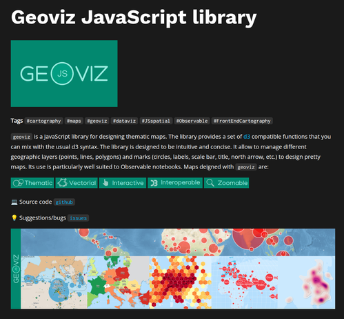 #Mastodon (source: @Nicolas Lambert 🌏)🚀 geoviz v1.0 released! 🥳 - Code: https://github.com/riatelab/geoviz- Documentation: https://riatelab.github.io/geoviz/#JavaScript #Maps #Cartography #JSspatial #Webmapping