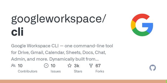 #Mastodon (source: @Devin Prater :blind:)So Google released Google Workspace CLI. I've not tested it yet, but if it can do have the stuff I hope it can, well, Emacs is about to get a ton more homely for me. :)https://github.com/googleworkspace/cli#Google #Workspace #cli #emacs